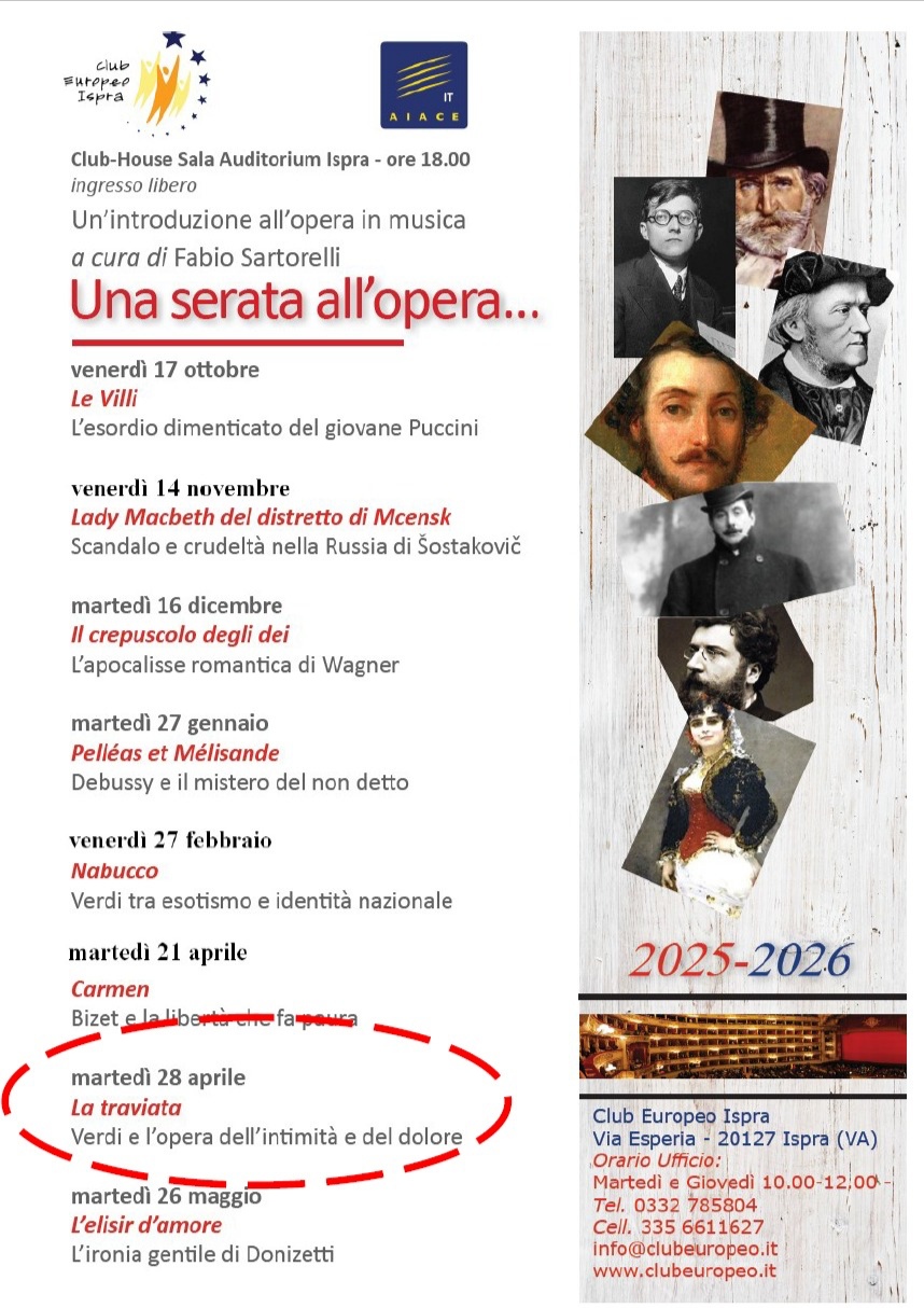 - Incontri MENSILI di Musica, Cinema, Alla Scoperta delle Opere e della Musica Classica